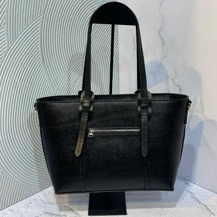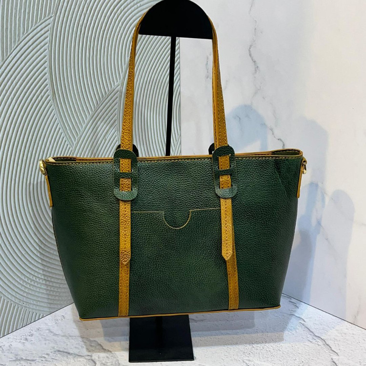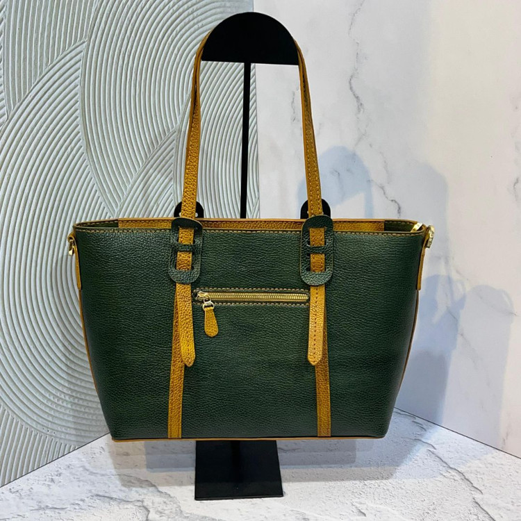 کیف دستی زنانه تمام چرم میباشد. داخل کیف نیز تمام چرم است. یک عدد جیب در پشت کیف و یک عدد جیب در جلوی کیف و یک عدد جیب نیز در داخل کیف قرار دارد. دو دسته چرمی و یک عدد بند دوشی چرم دارد. کیف بسیار نرم و سبک میباشد.